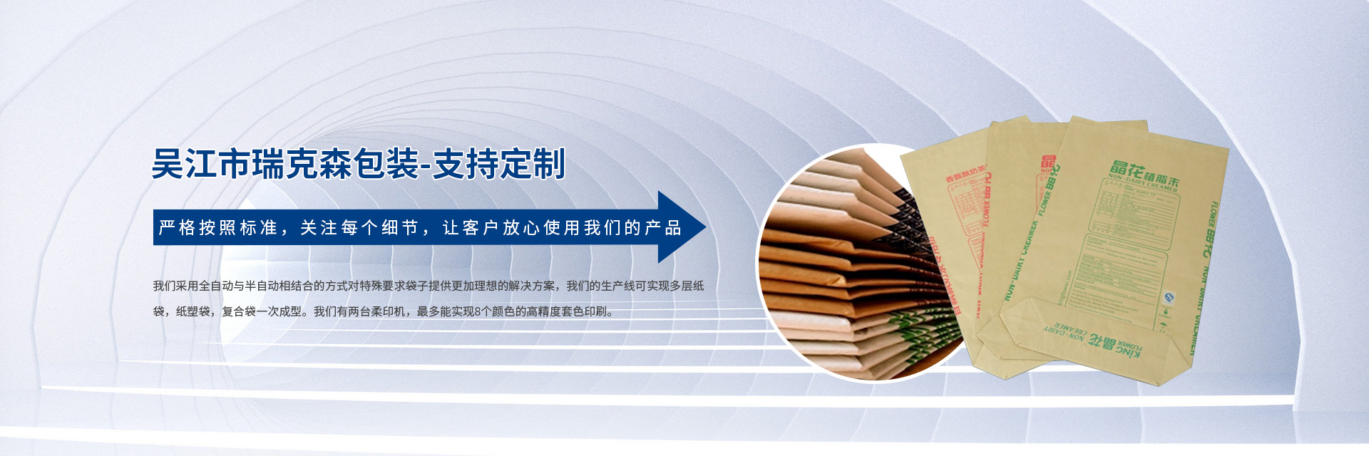 吳江市瑞克森包裝有限公司成立于2012年,坐落于蘇州太湖新城.我們主要為植脂末,奶粉,維生素等食品藥品企業(yè)提供包裝配套服務(wù)。瑞克森以安全,品質(zhì),環(huán)保,服務(wù)為經(jīng)營(yíng)理念,建立符合食品衛(wèi)生要求的制造環(huán)境,并通過(guò)QS食品包裝安全許可證,IOS9001質(zhì)量體系認(rèn)證。公司始終堅(jiān)持采用優(yōu)質(zhì)的原料跟生產(chǎn)工藝,生產(chǎn)的閥口袋,方底袋,熱封口袋,紙塑復(fù)合袋等完全能滿(mǎn)足全自動(dòng)灌裝的要求。